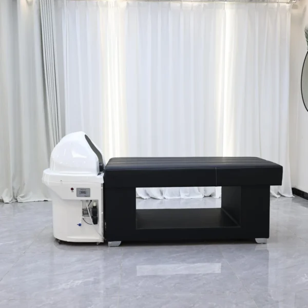 The fully self-contained water system eliminates the need for plumbing installation. Simply fill the integrated reservoir and enjoy an uninterrupted head spa experience anywhere—ideal for mobile practitioners, boutique salons, home users, and spaces with limited plumbing access.