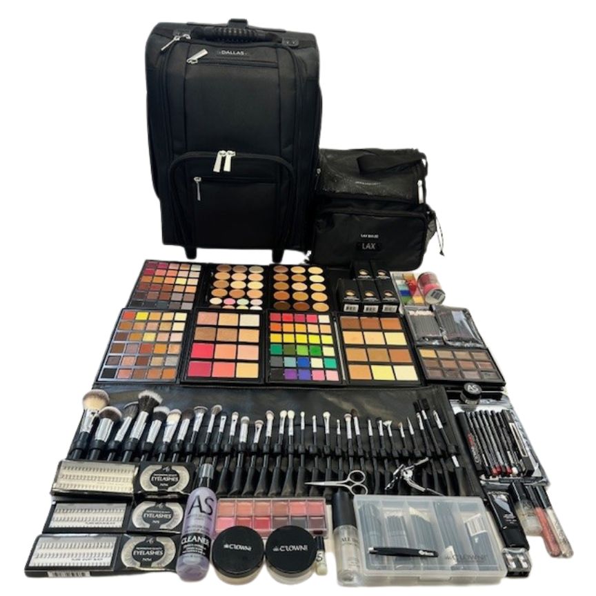 Packed with 30 professional brushes, multiple full-size palettes, a complete range of foundations, essential lash products, liners, pencils, mixing tools, and a versatile rolling Dallas Trolley Case, this kit ensures maximum organisation, efficiency, and performance.