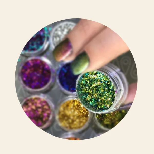 There are different type of powders like chrome powders, shimmer powders, and holographic powder. The difference in these are the pigment used which in return give you the different look.