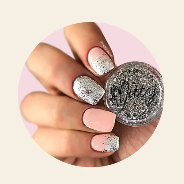 Bling, Bling, Bling. So sparkly you need sunglasses. Mitty shattered chrome flake is so amazingly awesome we cannot control our excitement. The particle size & quality is the best ever produced. The Micron count is just amazing. What does this mean? SPARKLES. And, Mitty shattered chrome flake will capture the light and reflect back at hundreds of different angles, the colours just appear to dance on your nails.