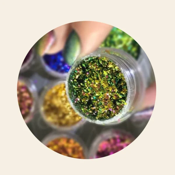 There are different type of powders like chrome powders, shimmer powders, and holographic powder. The difference in these are the pigment used which in return give you the different look.