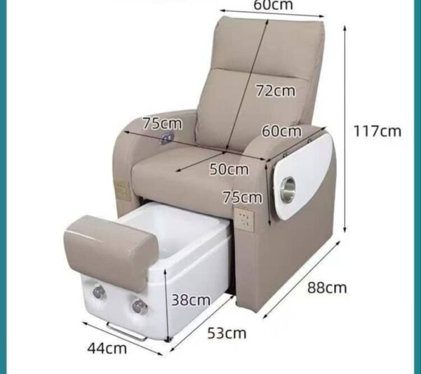 Built-in Pedicure Basin – A durable 53cm x 44cm basin with 38cm depth, perfectly sized for professional pedicure treatments.