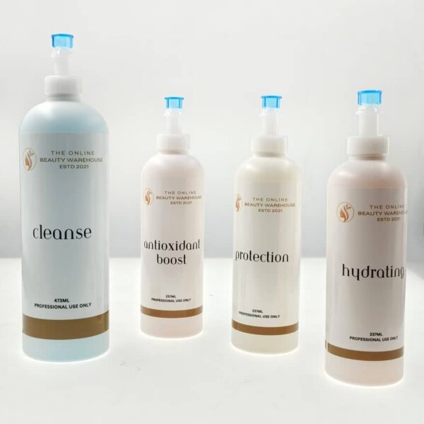 Cleanse (473 ml): A gentle yet effective deep-cleansing formula that removes impurities, excess oil, and surface buildup while maintaining the skin’s natural balance. Ideal as the first step in professional facial or hydrodermabrasion procedures.