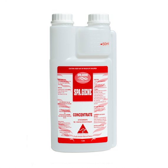 SPA.GIENE is a wide spectrum anti-microbial product. The base quaternary ammonium component is of the highest grade available. It is designed to effectively and hygienically clean the entire surface, pipes and pump system of spa baths, hydrotherapy baths, hydro baths, whirlpool baths and spa pools. Spa baths have no filtration and just circulate the water through unprotected pump and pipes.