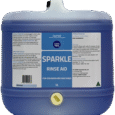 SPARKLE RINSE AID is a blue moderately viscous liquid and contains ingredients which, when mixed with water at 60-90°C rapidly lowers the surface tension of water and prevents water from forming droplets on a surface. This product is equally effective in both soft and hard water as it contains a water softener and anti-scaling agents.
