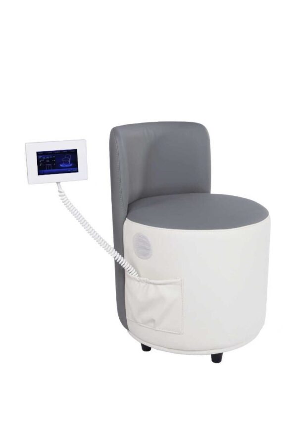 An integrated touch-screen control panel allows simple adjustment of settings, making this chair suitable for beginner operators or businesses introducing toning treatments for the first time. Its minimalist white finish with contrasting seat cushioning blends seamlessly into modern clinic, wellness, and studio environments.