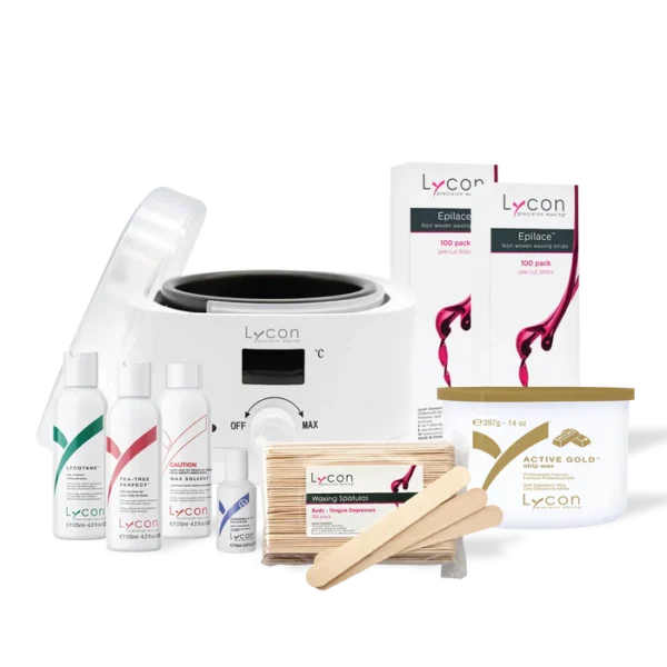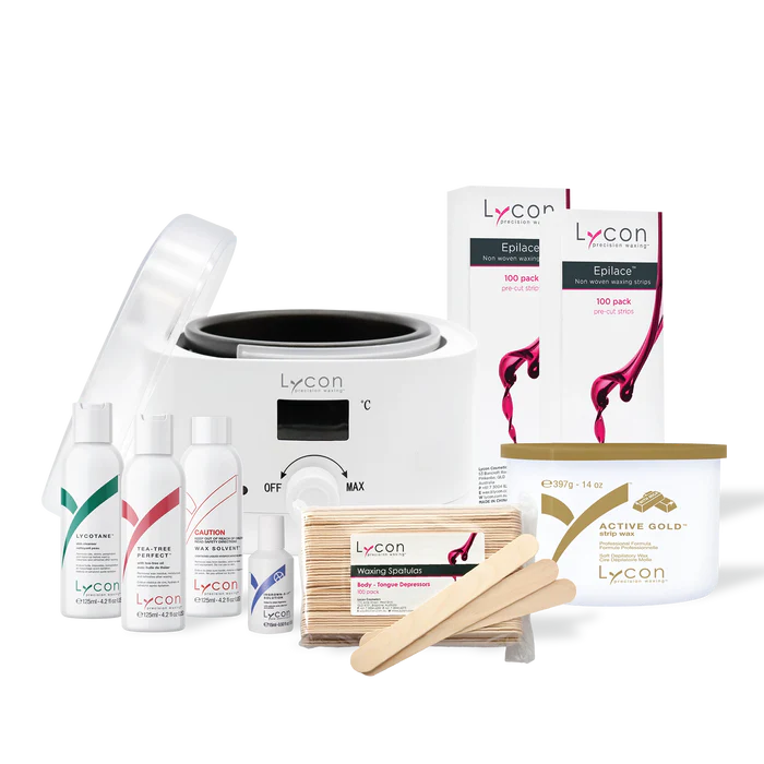 The LYCON Strip Professional Waxing Kit includes carefully selected combos for the best professional strip waxing. All conveniently packed in a beautiful pink carry bag!