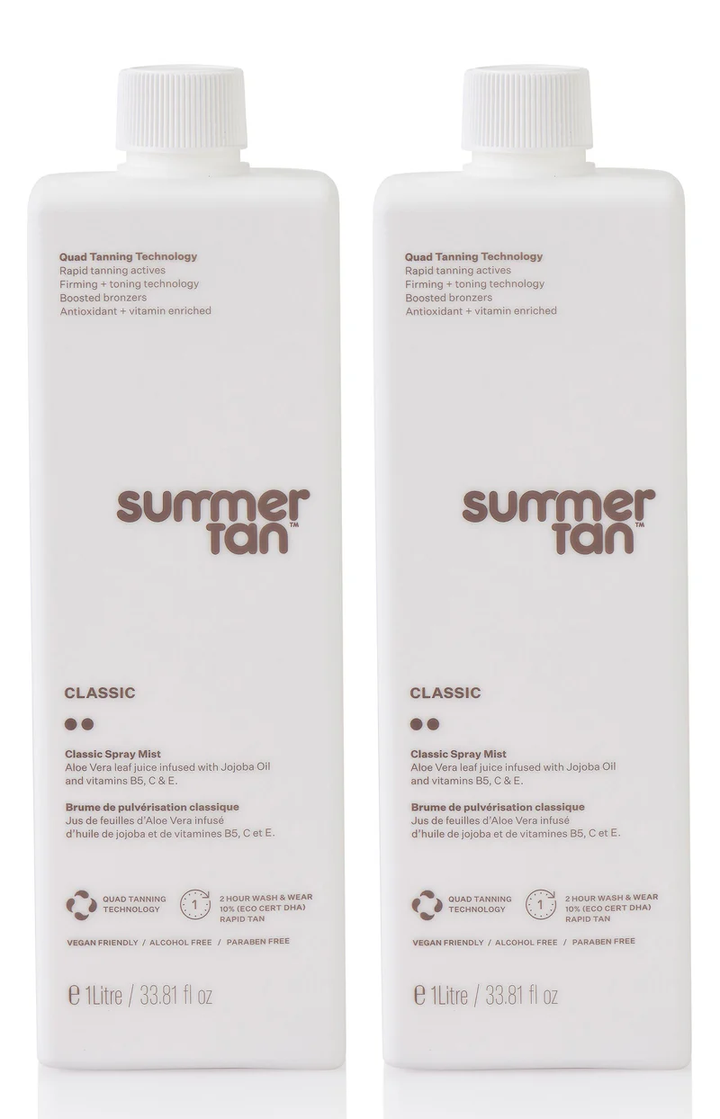 This pack of two Summer Tan Professional Spray-On Tans is value-for-money and available as two medium bottles, two dark bottles or one of each shade.
