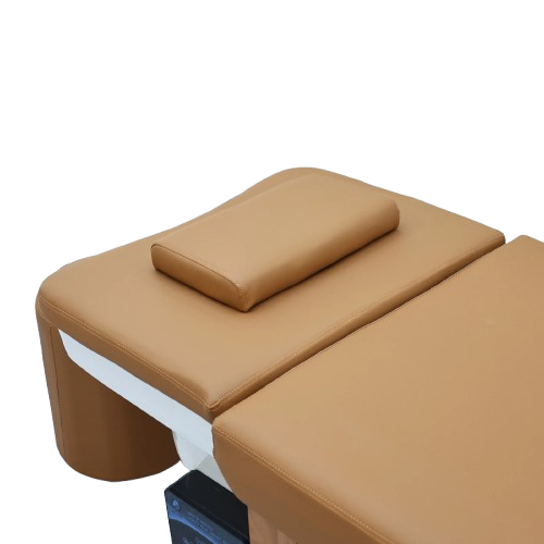 The bed also includes a built in basin with a removable cover, allowing the unit to easily convert into a flat treatment bed when the basin is not required. This versatile design allows beauty professionals to maximise the functionality of the bed, making it suitable for a variety of treatments beyond traditional head spa services.