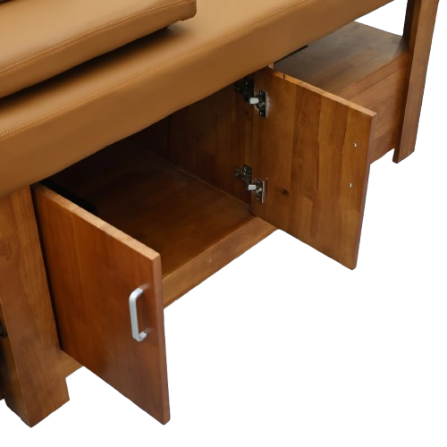 For added practicality, the Tranquility Japanese Head Spa features built in storage cupboards beneath the bed, offering convenient space for storing towels, products, and treatment essentials. This integrated storage helps keep the treatment space organised and clutter free while ensuring everything therapists need is easily accessible during treatments.