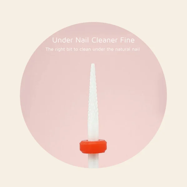 Under Nail Cleaner Medium: This drill bit is used to remove thicker products from under the nail leaving a clean finish. Use this drill bit in low speed.