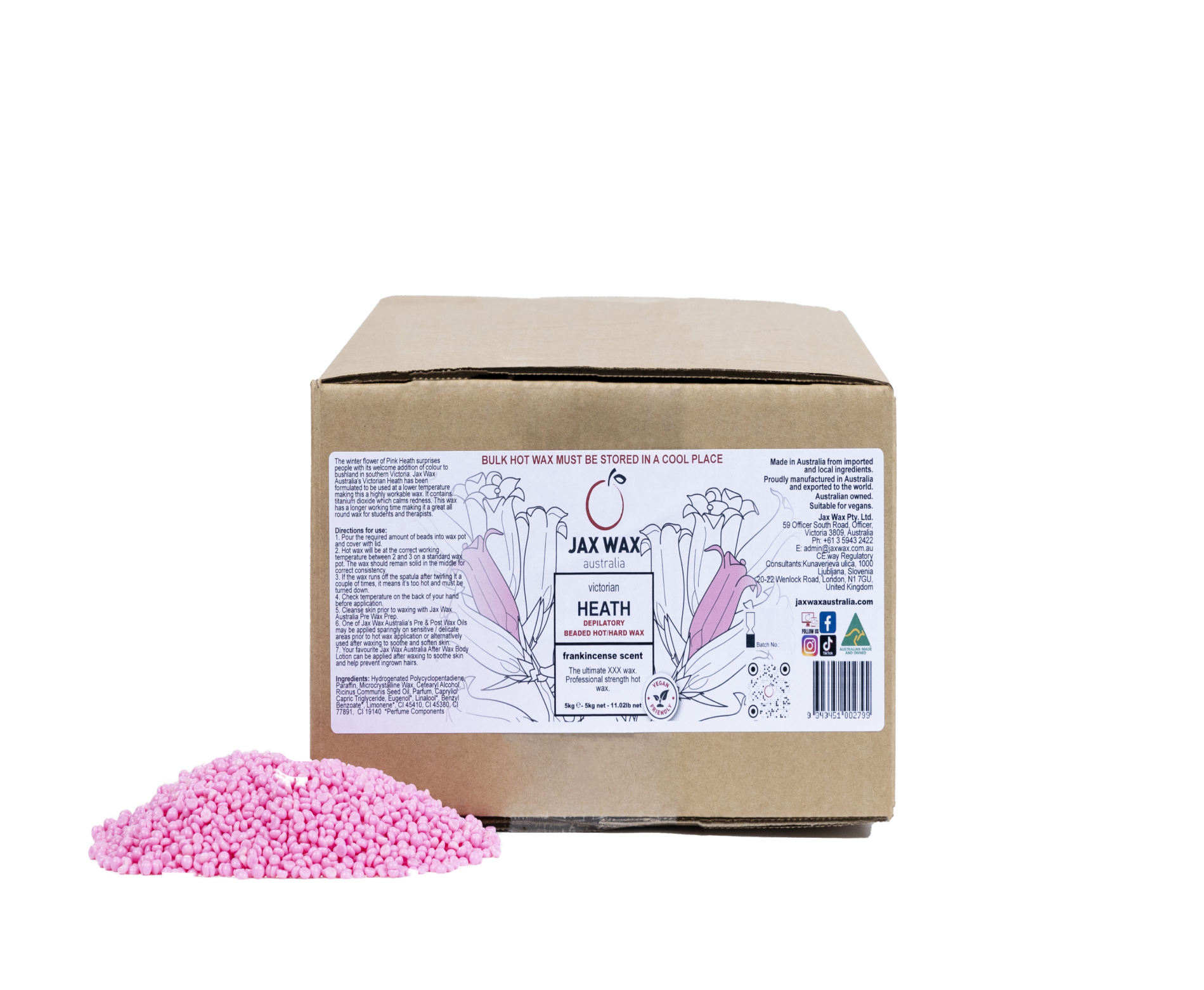The Common Pink Heath is the Victorian floral emblem and Victoria was the first Australian state to officially recognise a floral emblem. It is found mainly in southern Victoria’s semi‐shaded west foothills and coastal heathlands including the Grampians and the Little Desert National Parks. The winter flowering of Pink Heath surprises people with its welcome addition of colour to bushland in southern Victoria. Jax Wax Australia’s Victorian Heath has been formulated to be use at a lower working temperature making this a highly workable wax. Jax Wax Australia’s Victorian Heath Wax contains titanium dioxide which calms redness making it a great all round wax for students and therapists.