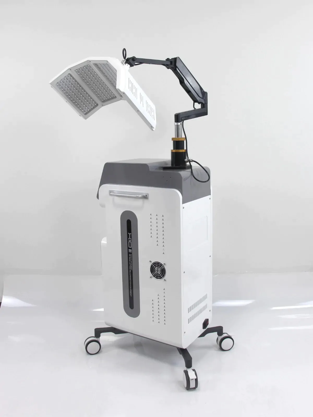 The arms are flexible, which ensures ideal positioning for either whole face or focused irradiation.