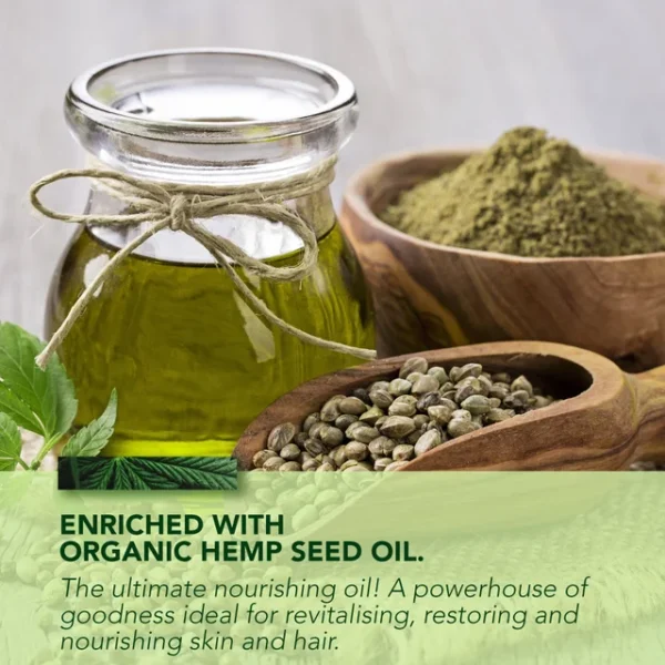 - Organic Hemp Seed Oil: Hemp seed oil is high in antioxidants – such as vitamins A, C, E, and F and fatty acids, these help to strengthen the outer layer of the skin so it can preserve water to help keep skin looking and feeling firmer.