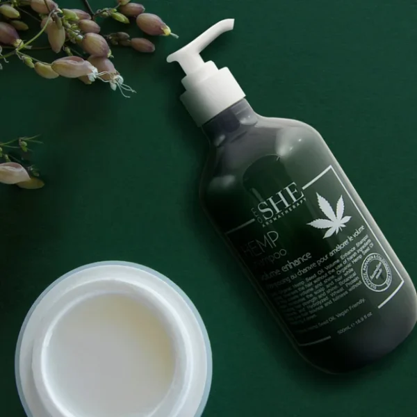 Aqua (Water), Cocamidopropyl Hydroxysultaine, Decyl Glucoside, Polyquaternium-7, Hydroxyethylcellulose, Xanthan Gum, Benzyl Alcohol, *Cannabis Sativa (Hemp) Seed Oil, Hydrolyzed Wheat Protein, Parfum (Fragrance), *Panax Quinquefolium (Ginseng) Root Extract, *Hamamelis Virginiana (Witch Hazel) Leaf Extract, *Urtica Dioica (Nettle) Extract, Sodium Benzoate, Dehydroacetic Acid, Disodium EDTA, Linalool, Amyl Cinnamal, Limonene, Geraniol. *Organic Ingredient