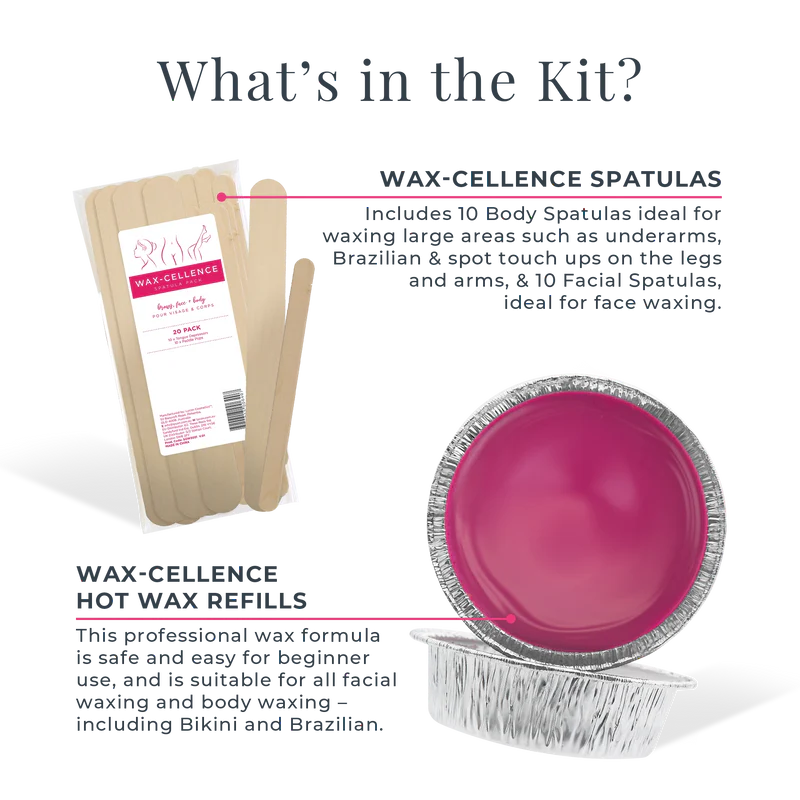 Take your home waxing to the next level with Wax-cellence Deluxe Home Waxing Kit! The Deluxe Home Waxing Kit includes the best hair removal products and detailed instructions to help you achieve perfect hair removal at home, every time!