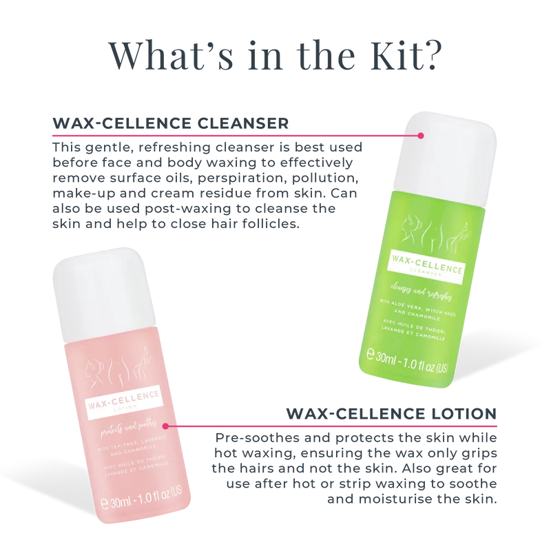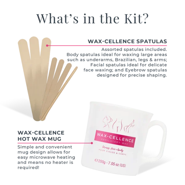 Wax-cellence Home Waxing Kit includes the best hair removal products and detailed instructions to help you achieve perfect hair removal at home, every time!