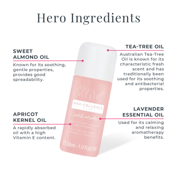 Also use Wax-cellence Lotion after hot or strip waxing to soothe and moisturise the skin.