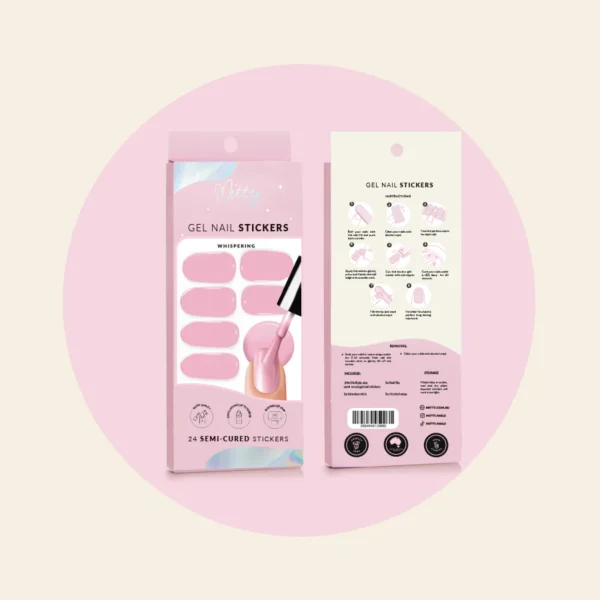 Mitty Semi-cured gel nail stickers are crafted with genuine liquid gel, pre-set at 60% completion. These flexible, self-adhesive strips conform seamlessly to nails of various shapes and sizes. Following application, a brief exposure of just 60 seconds under a LED lamp achieves full 100% curing, ensuring a salon-quality finish.