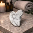 The white turquoise gua sha is an elegant crystal facial massage tool created to help improve circulation, support lymphatic drainage, reduce puffiness and enhance your skin’s natural radiance. Made from smooth white turquoise stone, this gua sha tool glides comfortably over the face and contours to the jawline, cheekbones and under-eye area, providing a soothing and effective massage that complements any skincare routine.