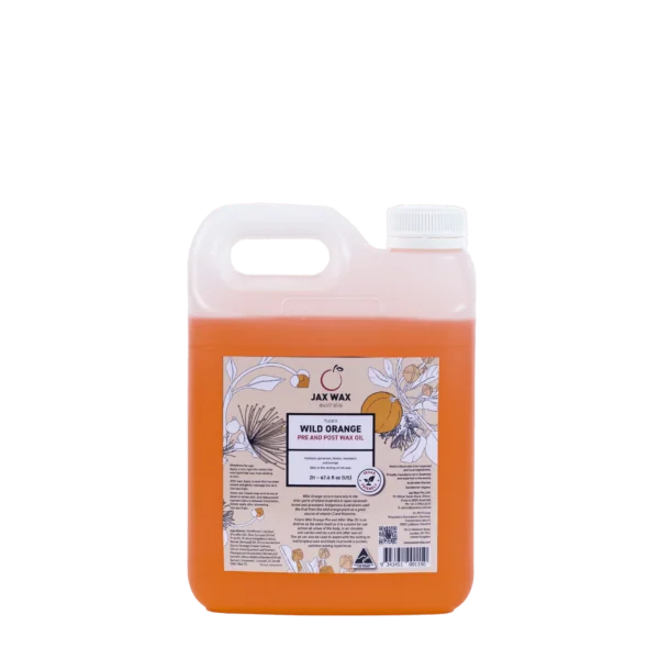 Essential oils of geranium, lemon, mandarin and orange are combined with peach and almond oils to soften and protect the skin prior to application of hot wax.