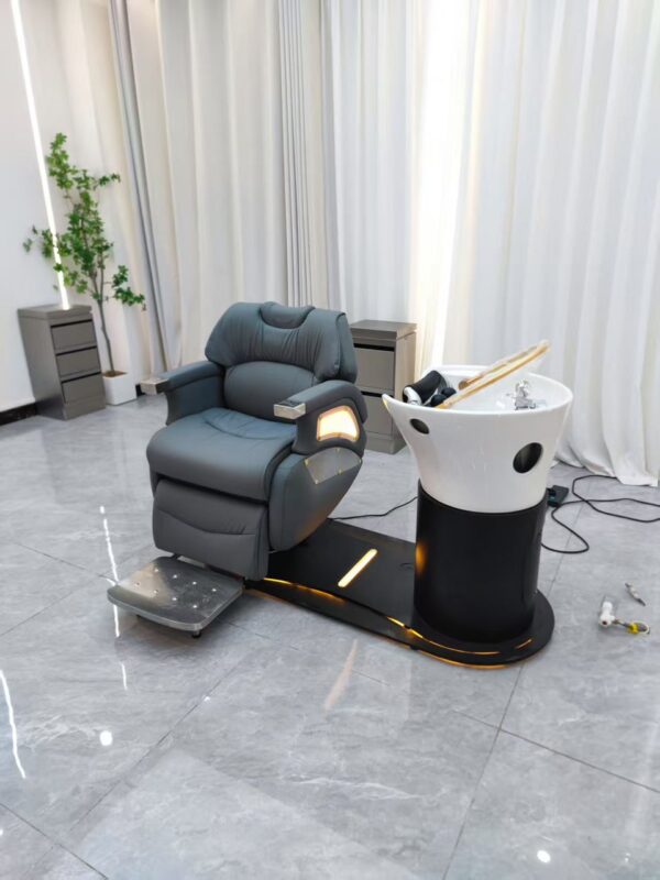 Zen Plush Japanese Head Spa Hairdressing Basin Plumbed Grey – Professional Salon and Barber Spa Unit