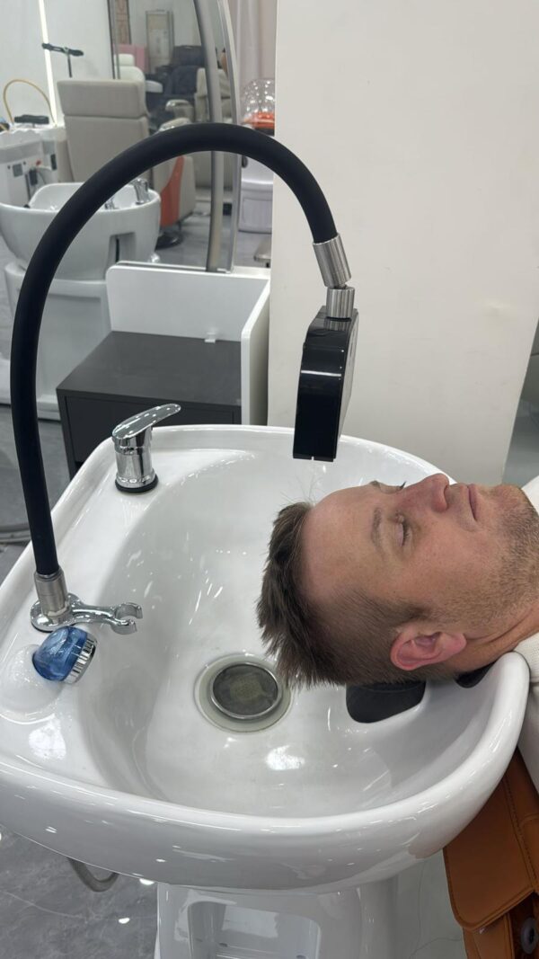 The basin itself is designed with an upgraded water halo feature, which provides an even, soothing flow of water around the scalp during treatments. This creates a calming spa like experience while assisting with thorough cleansing and scalp therapy techniques often used in Japanese head spa rituals.